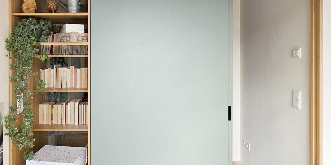 Mit umfangreichen Eingriffen wurde die Wohnung neu strukturiert: neben einem zusätzlichen Schlafraum soll sie eine moderne, offene und wohnliche Atmosphäre mit reduziertem aber prägnantem Materialkonzept erhalten. Die dunklen Gänge verschwinden, der überflüssige Gang wird den Zimmern und Wohnräumen zugeschlagen, die mehr Tiefe erhalten. Bad und WC werden neue situiert, mit einem Oberlicht und neuer Beleuchtung wird die minimierte hell gestaltetet Bewegungsfläche vergrößert. Die Detailierung der Türen und Schränke, die in der Wand verschwinden, unterstützt dieses Konzept.